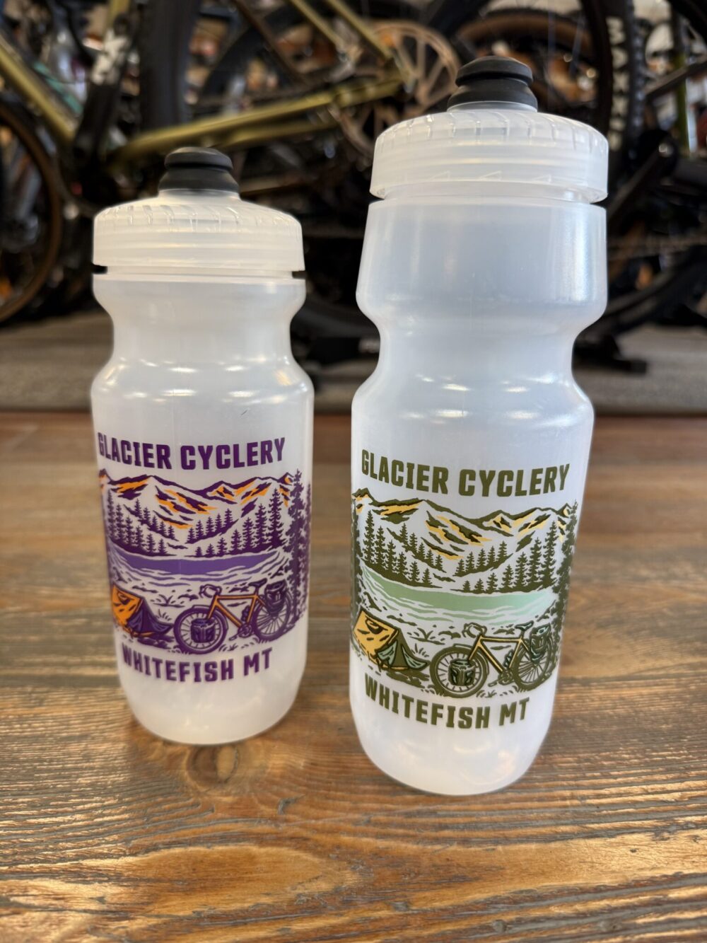 BPA-free flexible water bottle made by Specialized. Custom Glacier Cyclery designs by local graphic artist who also loves riding local trails (and having us fix her bike!).
